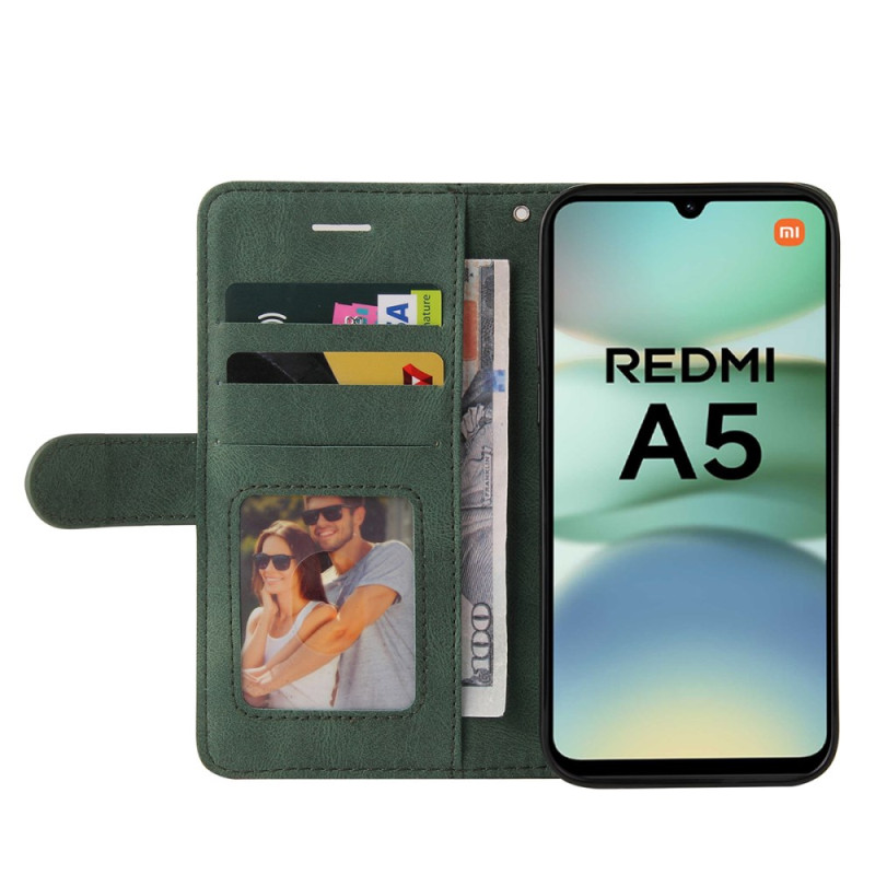 Scoprite la nostra cover a portafoglio in pelle per lo Xiaomi Redmi A5. Combinando protezione robusta e stile elegante, offre una pratica funzione stand, scomparti per carte e foto, una sicura chiusura magnetica e un facile accesso a tutte le funzioni del telefono.