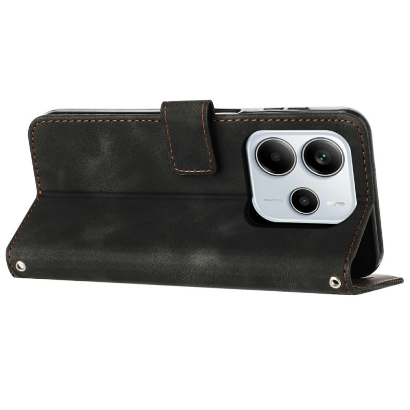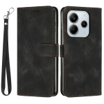 Scoprite la nostra elegante cover portafoglio per lo Xiaomi Redmi Note 14 4G. Realizzata in pelle PU con un motivo a triangolo stampato, offre stile e protezione.