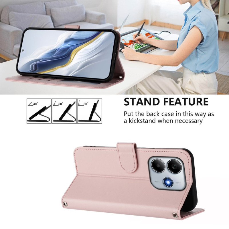 Scoprite la nostra cover a portafoglio in pelle per lo Xiaomi Redmi Note 14 5G. Realizzata in pelle PU e TPU di alta qualità, offre una protezione resistente e versatile. Con i suoi 3 slot per carte, lo scomparto per le banconote e la funzione stand, questa cover combina praticità e sicurezza per il tuo telefono.