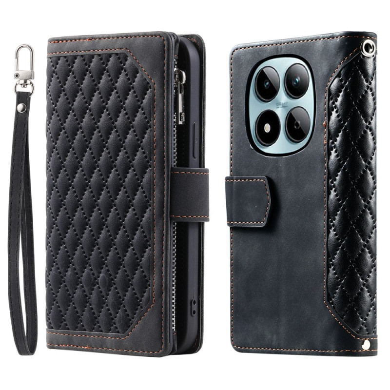 Elegante cover a portafoglio con motivo a diamante trapuntato per il tuo Xiaomi Redmi Note 15 Pro 4G. Combina stile e funzionalità con molteplici slot per carte, supporto per mani libere e chiusura magnetica sicura.