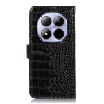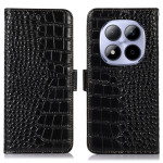 Elegante cover a portafoglio con texture coccodrillo per Xiaomi Redmi Note 15 Pro 4G. Protezione RFID integrata, 3 slot per carte e 1 tasca per banconote. Supporto di visualizzazione regolabile e doppia chiusura magnetica per una sicurezza ottimale.