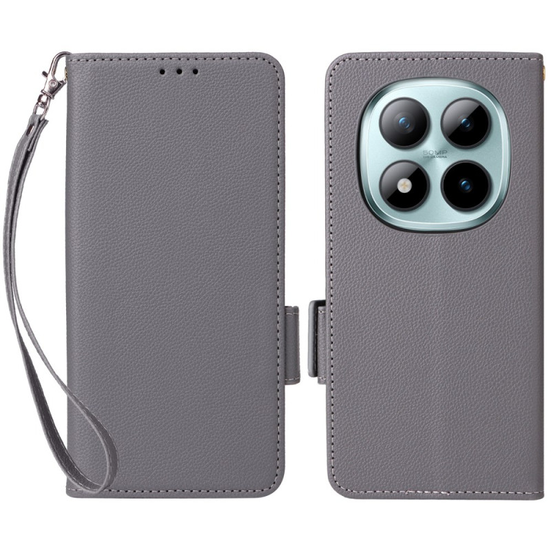 Elegante cover a portafoglio in pelle PU con texture lychee per Xiaomi Redmi Note 15 Pro 5G. Funzione vivavoce, chiusura magnetica e cinturino da polso inclusi. Proteggete il tuo telefono con stile e tenete a portata di mano le tue carte essenziali.