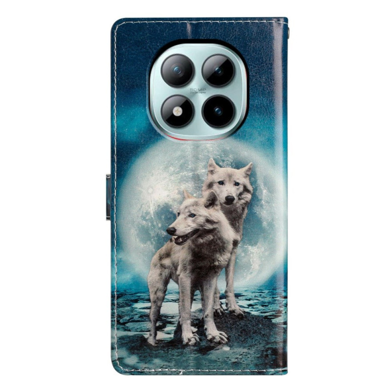 Elegante cover a portafoglio con motivo a due lupi per Xiaomi Redmi Note 15 Pro Plus 5G. Design sofisticato con supporto integrato, 3 slot per carte e chiusura magnetica sicura. Include un pratico laccetto per facilitare il trasporto.