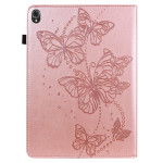 Étui élégant avec motif papillons gaufrés pour Lenovo Tab K10 - TB-X6C6. Fonction réveil/veille automatique, support mains libres ajustable, porte-cartes intégrés et boucle pour stylet. Sangle élastique sécurisée. Protection complète contre rayures et chocs...