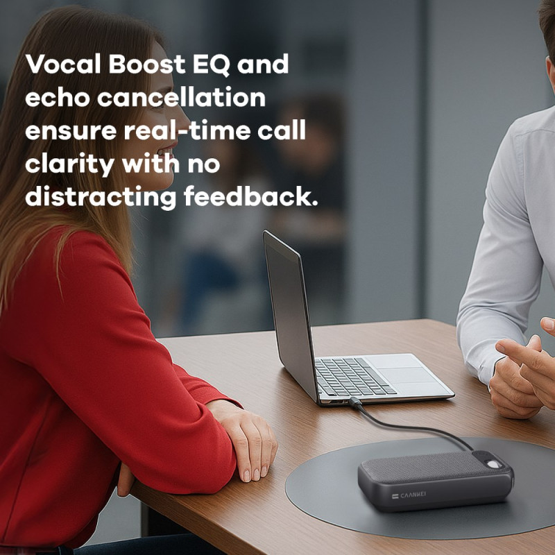 The U60 speaker provides a plug-and-play professional audio solution with USB-C connectivity for Windows, macOS, ChromeOS and Linux. Its 2-inch full-range driver, reinforced by two passive radiators, delivers clear, immersive sound, ideal for calls, meetings and presentations. The omnidirectional microphone with DSP effectively reduces ambient noise to ensure crystal-clear communication. Two EQ modes allow you to tailor the sound experience, while a dedicated thumbwheel makes it easy to control volume and playback.