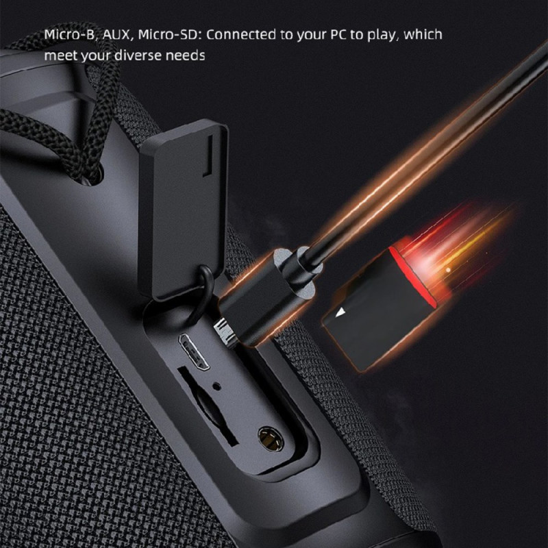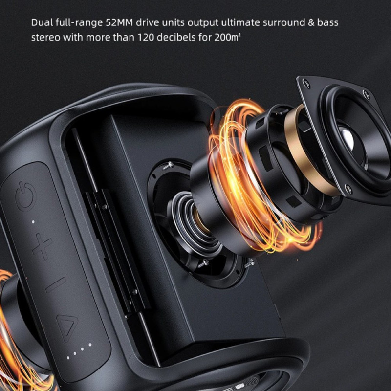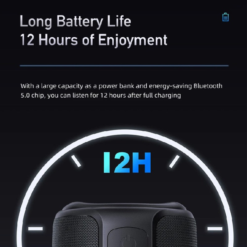 This Bluetooth V5.0 speaker provides a stable, low-interference connection for clear audio streaming with smartphones and computers. Its TWS function lets you combine two speakers to create a truly immersive stereo experience. The built-in microphone facilitates hands-free calls with clear voice quality. Designed for outdoor use, it has IPX6 protection, ideal for activities such as cycling, beach trips or outdoor parties. Its 2200 mAh battery provides up to twelve hours of listening, and its varied playback modes adapt to all situations.