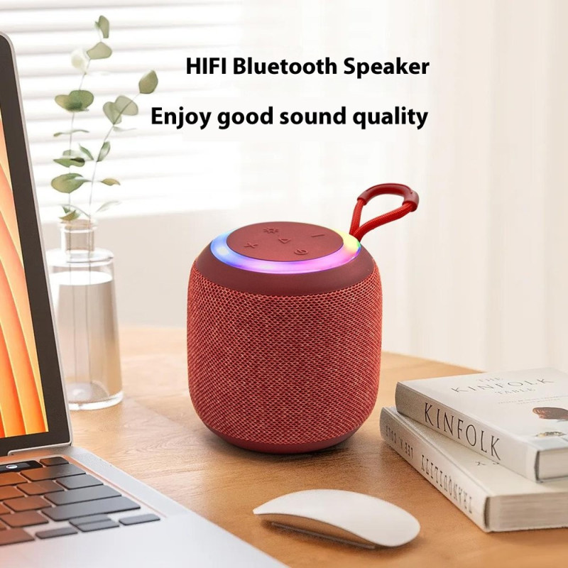 This portable speaker offers a compact format designed for outdoor activities, combining lightness, strength and versatility. Its RGB lighting synchronised with the music creates a dynamic atmosphere, ideal for sports outings or moments of relaxation. Bluetooth 5.1 connectivity ensures smooth transmission, complemented by support for TF cards, FM radio and USB mode. Thanks to the TWS function, two speakers can be paired for immersive stereo sound. Its 500 mAh battery guarantees up to ten hours of lighting or 75 minutes of playback at maximum volume.
