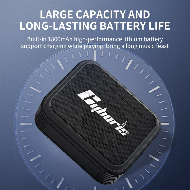This compact, waterproof IPX7 CYBORIS speaker offers versatile use both outdoors and at home. Its 15 W speaker ensures clear, powerful listening, while the Bluetooth 5.3 connection guarantees stable transmission even when you're on the move. Thanks to its 1800 mAh battery, it lasts for over twelve hours at moderate volume. It supports several audio sources, including U disk, TF card and AUX, and incorporates advanced functions such as FM radio, voice recording and loop playback. Its integrated lanyard makes it easy to carry, making it a practical companion for the beach, the pool or when travelling.