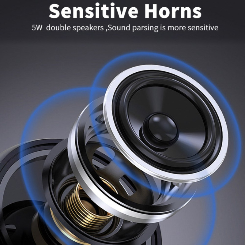 The AFK Bluetooth speaker combines a compact design with a built-in mood light, ideal for creating a warm atmosphere at home or out and about. Thanks to its Bluetooth 5.1 chip, it provides a stable, compatible connection with all wireless devices, complemented by clear, balanced Hi-Fi sound. Versatile, it offers FM radio, playback via TF and USB, and an AUX mode for wired sources. Its 2400 mAh battery provides up to 4 hours of listening at full volume, and the dual speaker function delivers immersive stereo sound.