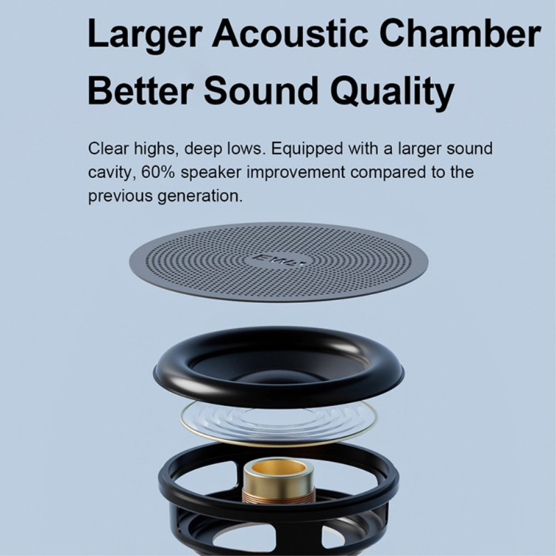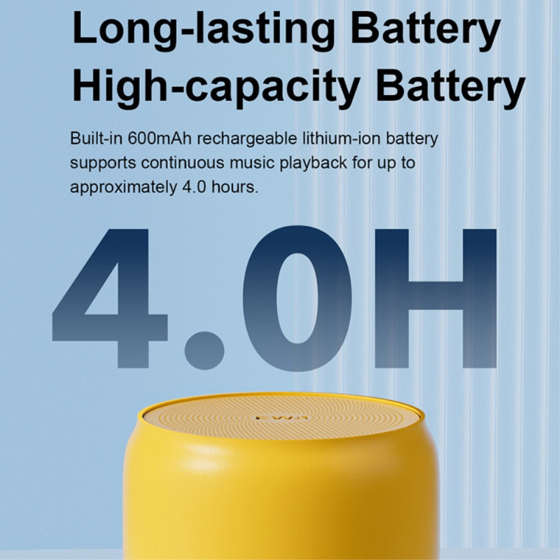 The EWA speaker combines an ultra-compact size with a meticulous metal design to deliver surprisingly powerful sound. Thanks to Bluetooth 5.0, the connection is stable and energy-efficient, enabling smooth listening up to 10 metres away. Its 3W neodymium driver and downward-firing passive radiator boost bass for clear, rich, resonant sound. Despite its small size, it delivers a full, balanced volume. The TWS function lets you pair two speakers for true stereo sound. Battery life is around four hours at moderate volume.
