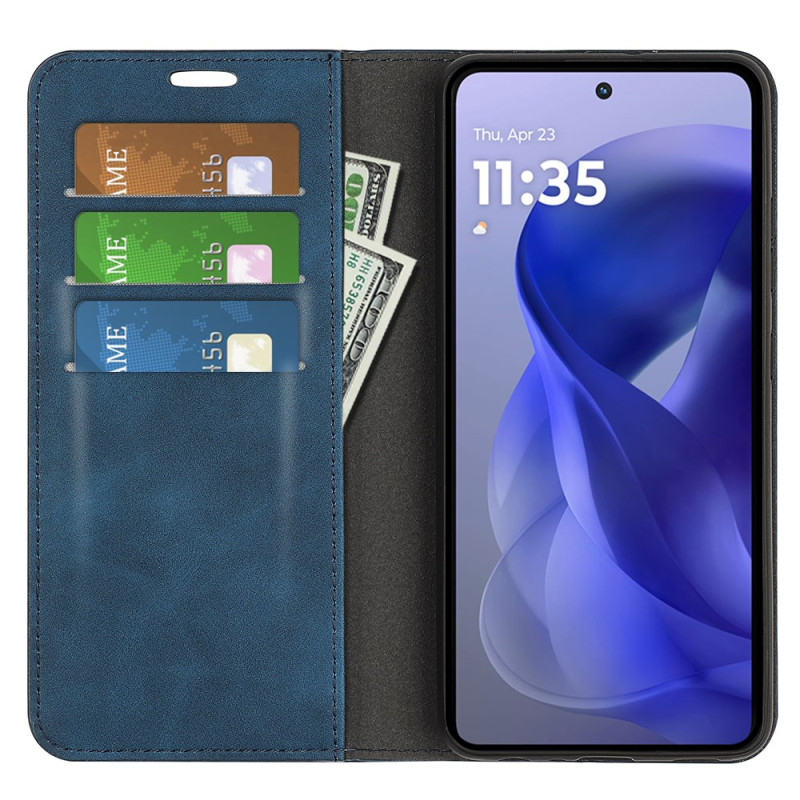 Discover our PU leather wallet cover for the Motorola Moto G Power (2025). Combining elegance and functionality, it offers complete protection, card storage, an integrated stand and a magnetic closure.