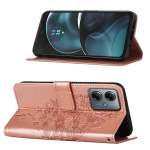 An elegant and functional wallet cover with a baroque butterfly and strap designed for the Motorola Moto G14 4G.