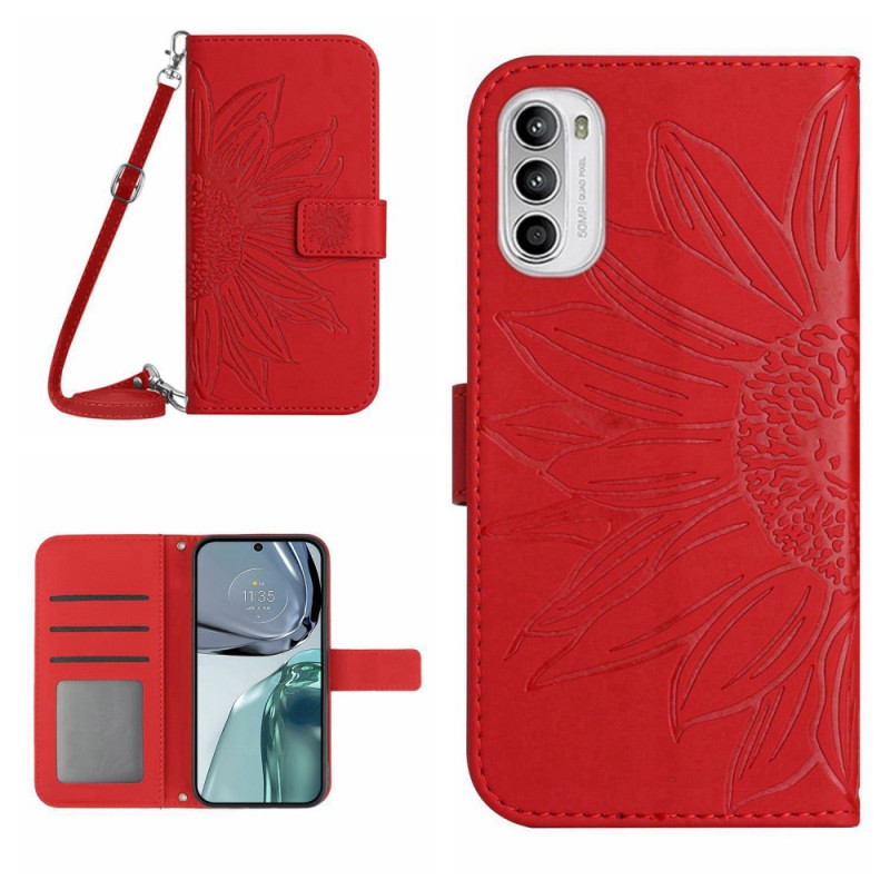 The Moto G62 5G is perfectly safe with a Sunflower cover that comes with a shoulder strap.