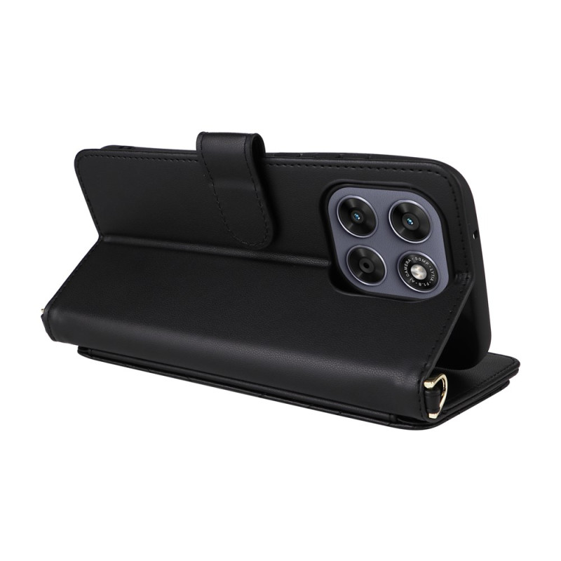 Protect your Motorola Moto G77 5G / G67 5G with this pink wallet case with practical shoulder strap.