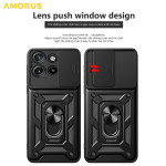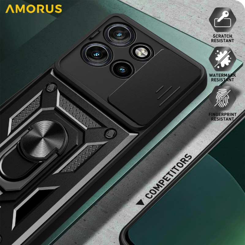 Practical, it incorporates a sliding lens cover and a rotating kickstand.