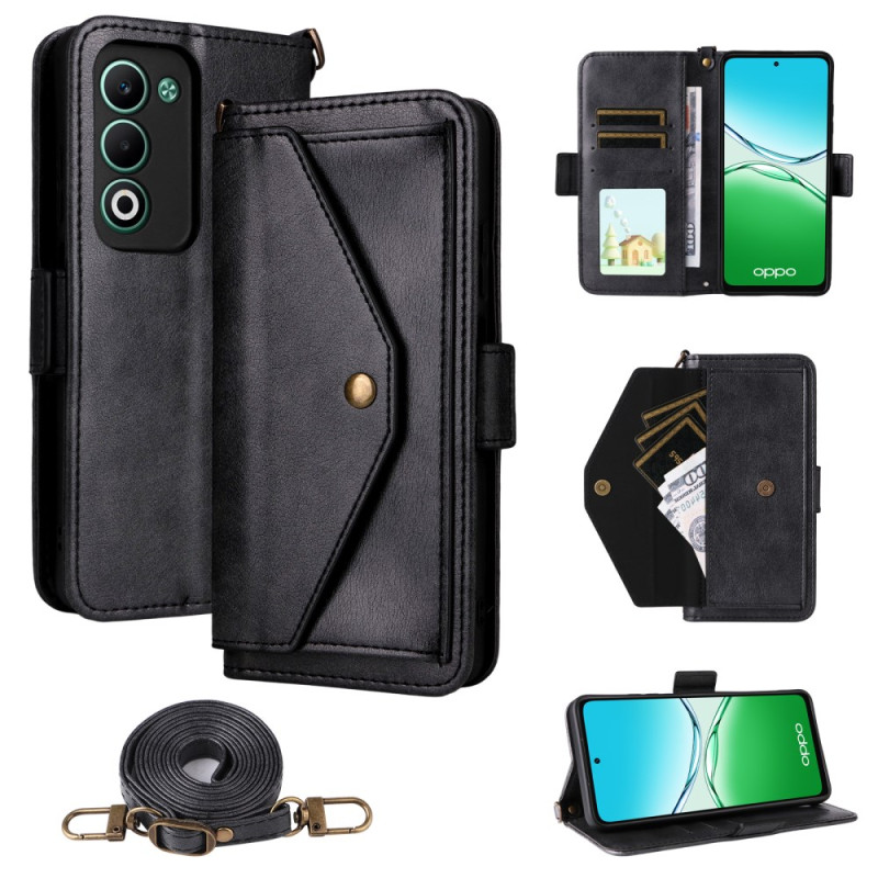 Protect your Oppo A5 5G / 4G in style with this multifunctional wallet case. With multiple compartments for cards and cash, a secure magnetic closure and an adjustable shoulder strap, it combines style and practicality for everyday use.
