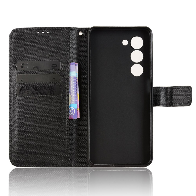 Elegant wallet case with diamond texture for your Oppo A5 5G / 4G. Featuring card compartments, cash pocket and practical hand strap. Full protection with foldable stand for hands-free viewing.