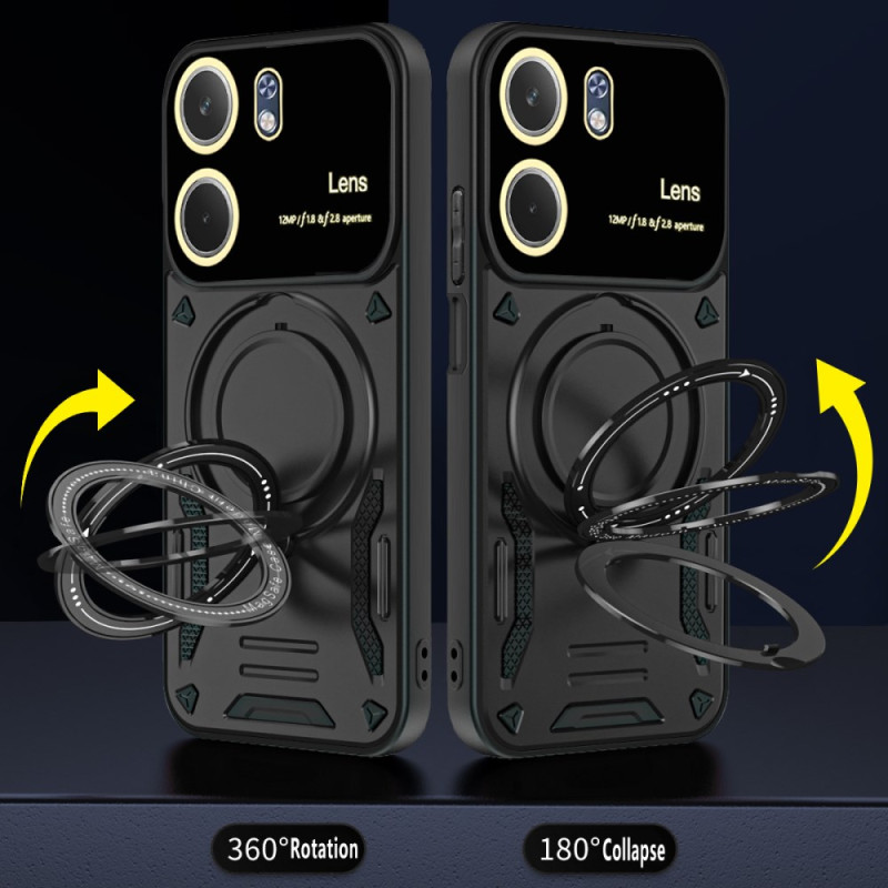 Protect your Oppo A5X with this robust case featuring an integrated rotating magnetic holder. MagSafe compatible, it combines PC and TPU for optimum protection against bumps and scratches. Enjoy hands-free viewing and wireless charging.