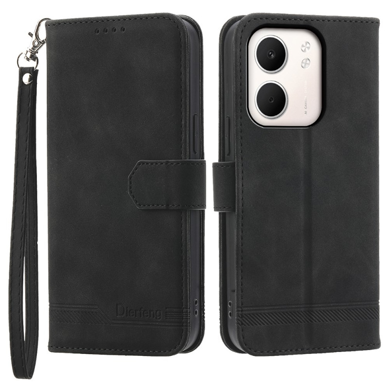 Discover the DIERFENG wallet case for Oppo A5x, combining elegance and functionality. With its engraved line patterns, flexible inner case , compartments for cards and cash, and practical hand strap, this case offers protection and comfort every day.