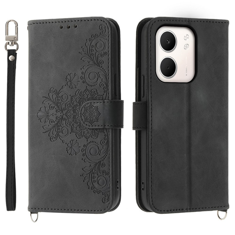 Protect your Oppo A5X 4G in style with this premium PU leather wallet case. Its refined design with floral motif adds a unique touch of luxury. With 3 card slots, a note compartment and a stand function, this case combines style and practicality for everyday use.