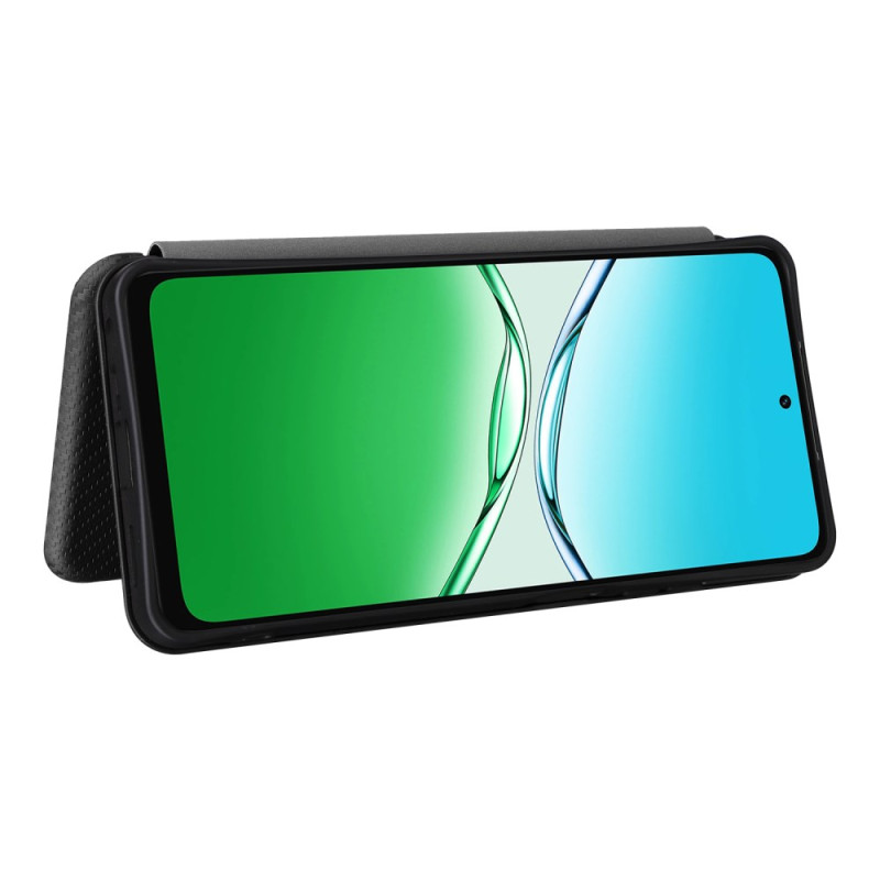 Stylish case with carbon fibre texture for Oppo A5X 4G. Double-layer protection in PU leather and soft TPU. Features an integrated card holder, secure magnetic closure and a practical stand function for viewing your content.