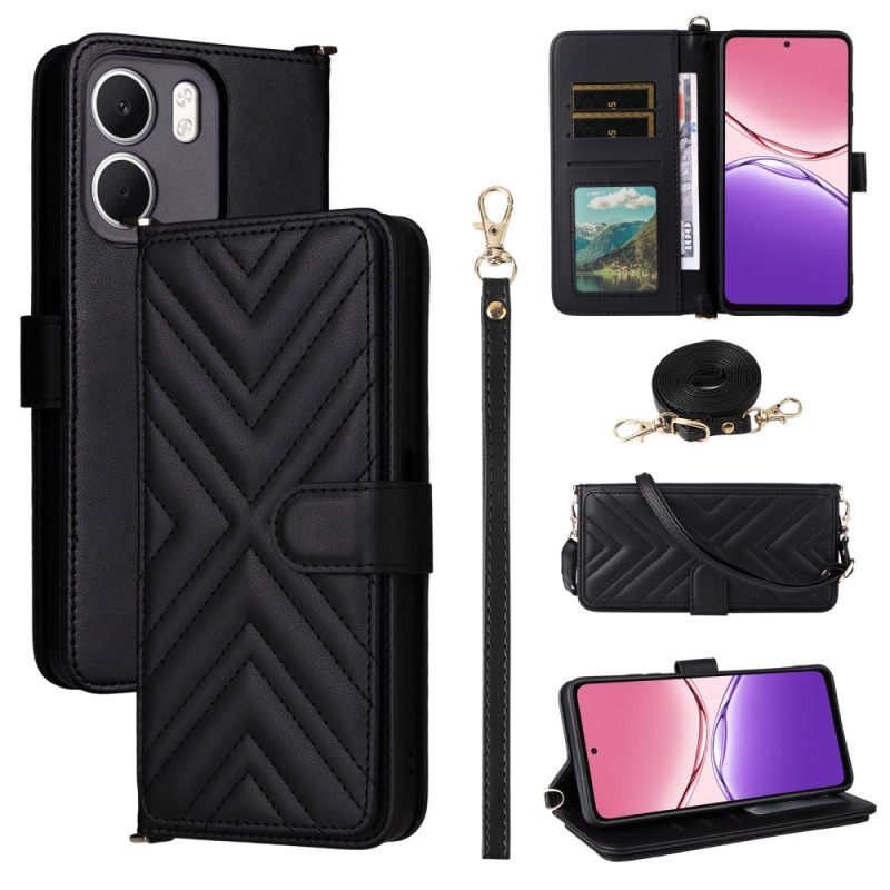 Stylish wallet case for Oppo A5X 4G in premium PU leather with adjustable stand, secure magnetic closure and removable shoulder strap. Protect your phone in style while keeping your cards and cash close to hand.