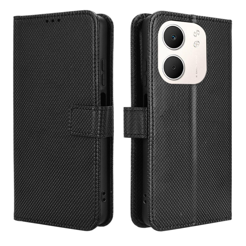 Elegant wallet case with diamond texture for your Oppo A5X 4G. Features card slots, cash pocket and practical hand strap. Secure magnetic closure and integrated foldable stand for hands-free viewing.