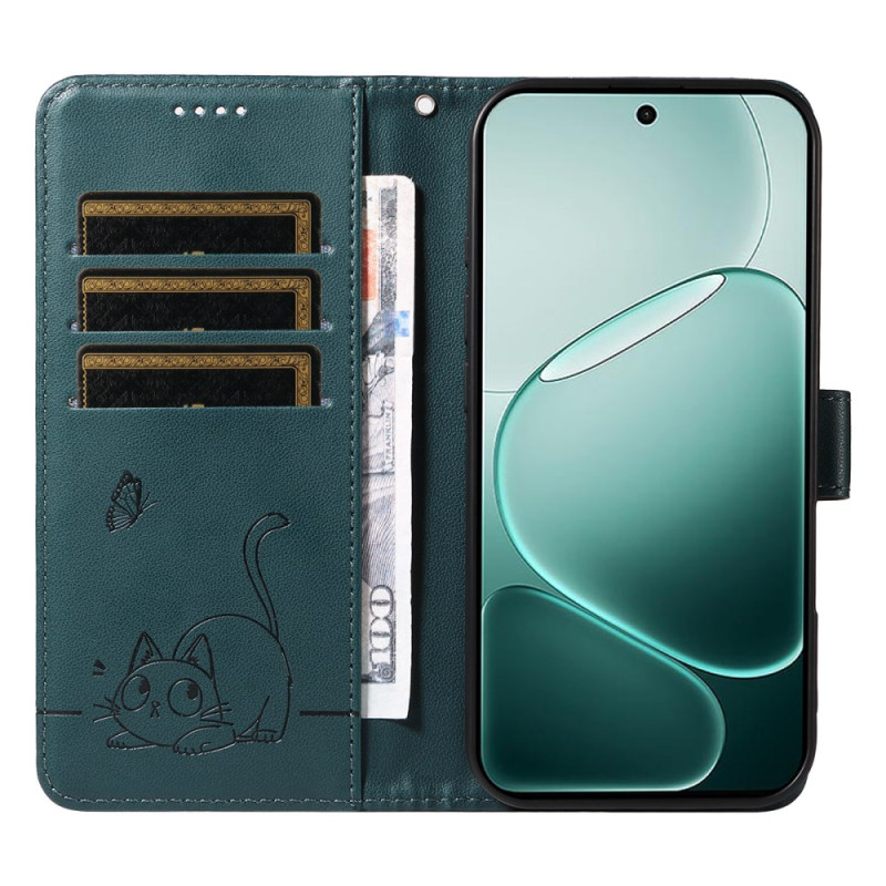 Multifunction wallet with engraved lucky cat motif. Elegant design with 3 card slots, money pocket and wrist strap included. Secure magnetic closure and all-round shock protection for your smartphone.