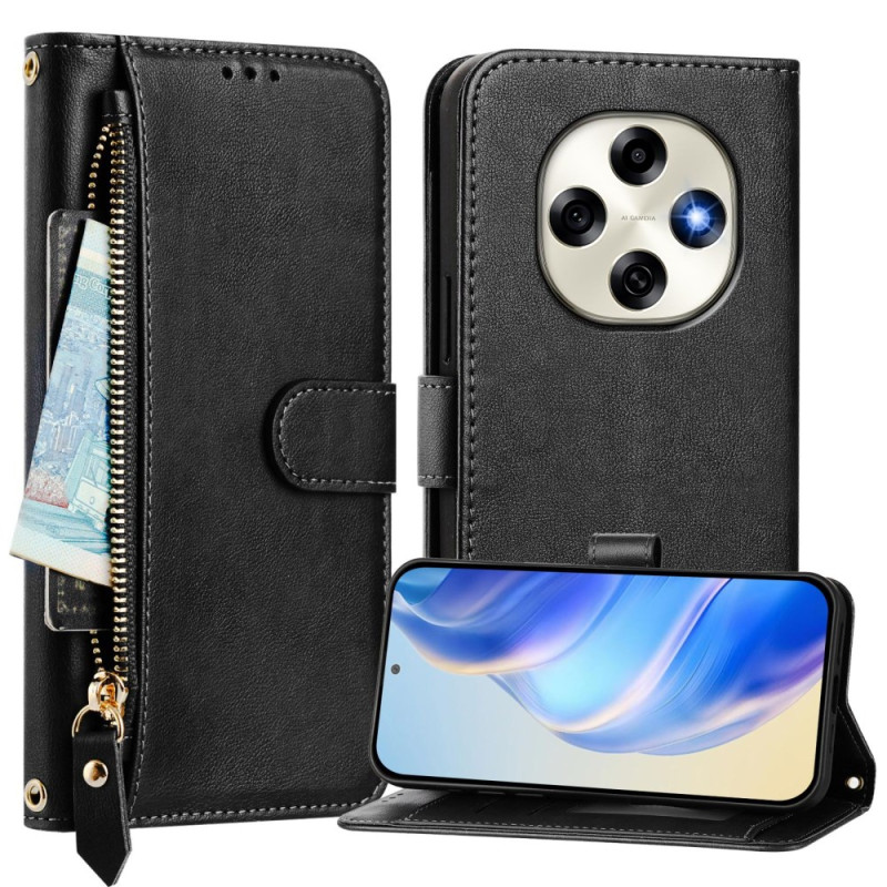 Multifunction PU leather case with front zip pocket, multiple card slots and note compartment. Integrated hands-free holder and secure magnetic closure. Supplied with hand strap for practical, secure transport.
