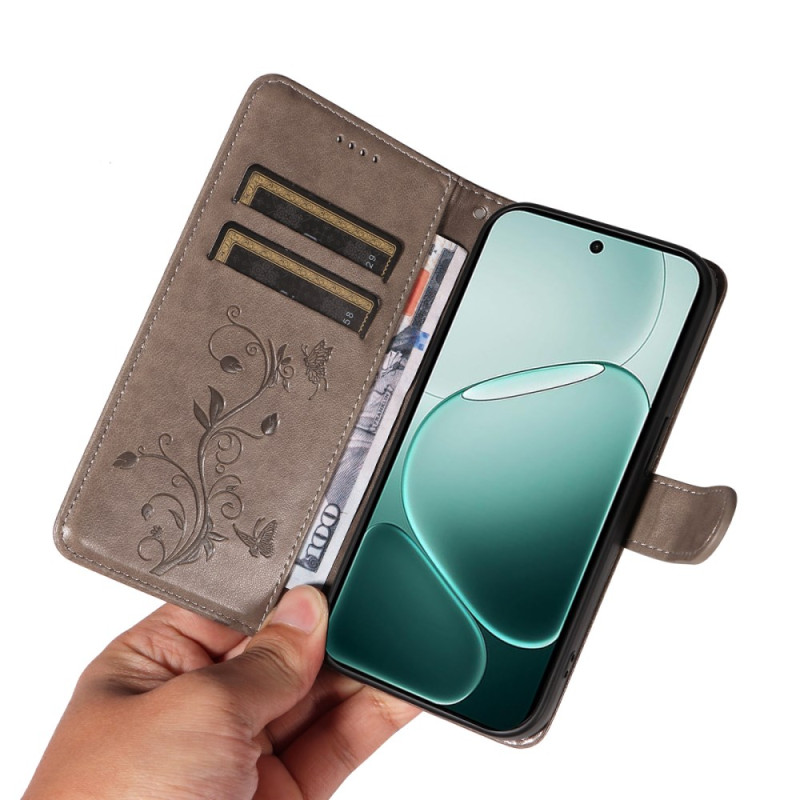 Discover this elegant wallet case in synthetic leather with butterfly and flower motif. With compartments for cards, an integrated holder and a practical hand strap, it combines refined style with complete protection for your phone.