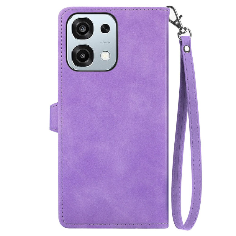 Elegant PU leather wallet with engraved floral motif, multiple pockets for cards and cash, secure magnetic closure and integrated viewing stand. Complete protection against scratches and drops with practical hand strap.