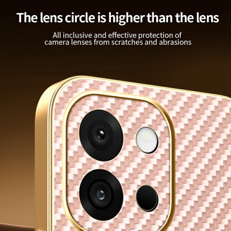 Protect your Oppo A6 Pro 5G in style with this carbon fibre-textured TPU case. Its electroplated finish offers a refined look while guaranteeing optimum protection against knocks and scratches.