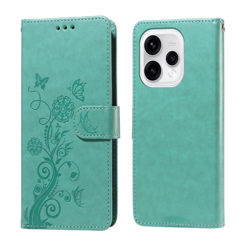 Discover our elegant PU leather wallet case for Oppo Reno 15 5G. Refined design with butterfly and flower print, integrated stand function, multiple card slots and complete protection for your smartphone every day.
