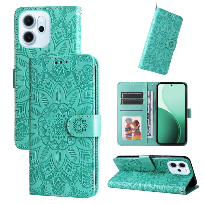 Protect your Oppo Reno 15 F 5G in style with this premium PU leather wallet case. Featuring a beautiful embossed sunflower motif, handy card slots and a stand function, this case combines style and functionality.