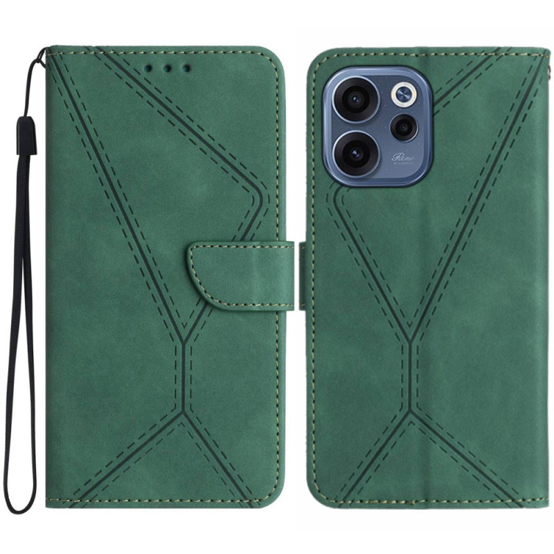 Stylish flip case for Oppo Reno 15 F 5G with soft-touch leather texture and printed lines. Complete protection with anti-shock cushions at the corners, adjustable support for hands-free viewing, and wallet style with card slots and hand strap.
