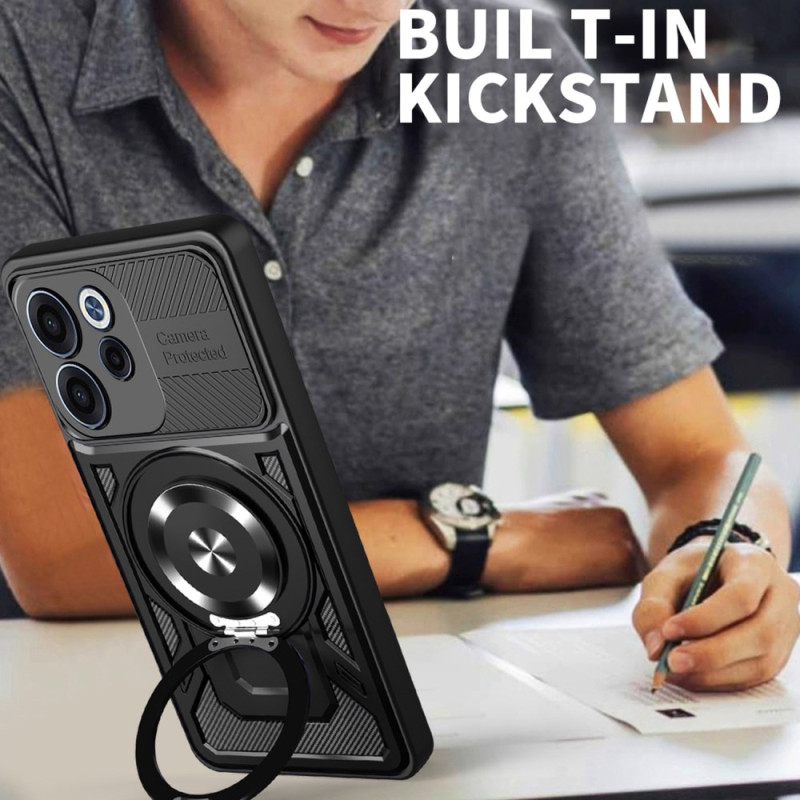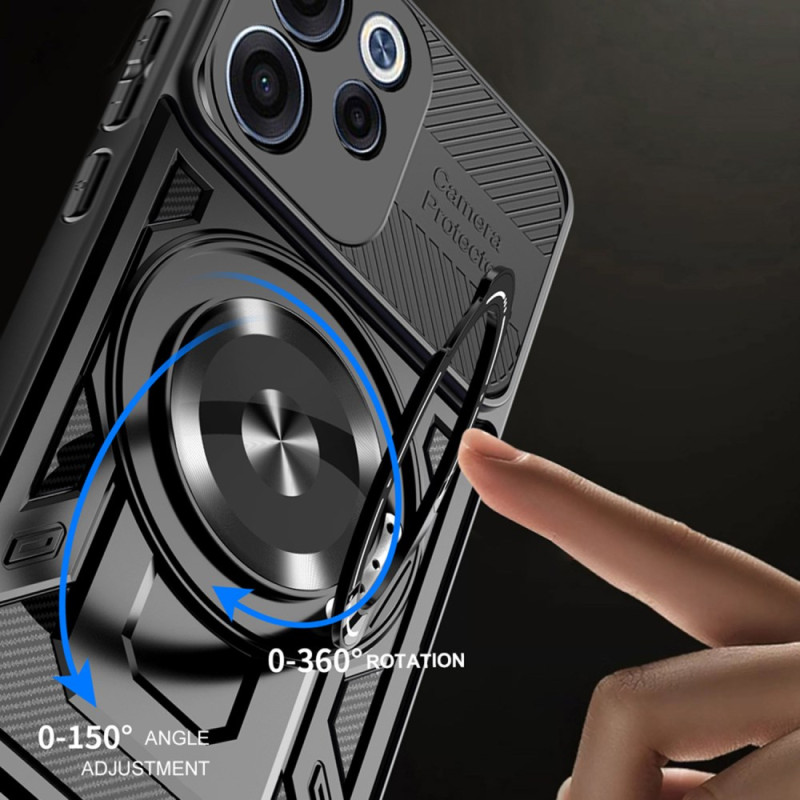 Protect your Oppo Reno 15 F 5G with this innovative magnetic case featuring a 360° rotating holder. Double military shock protection, compatible with magnetic car mounts and accessories. Ergonomic design with carbon fibre texture for sporty style and optimum grip.
