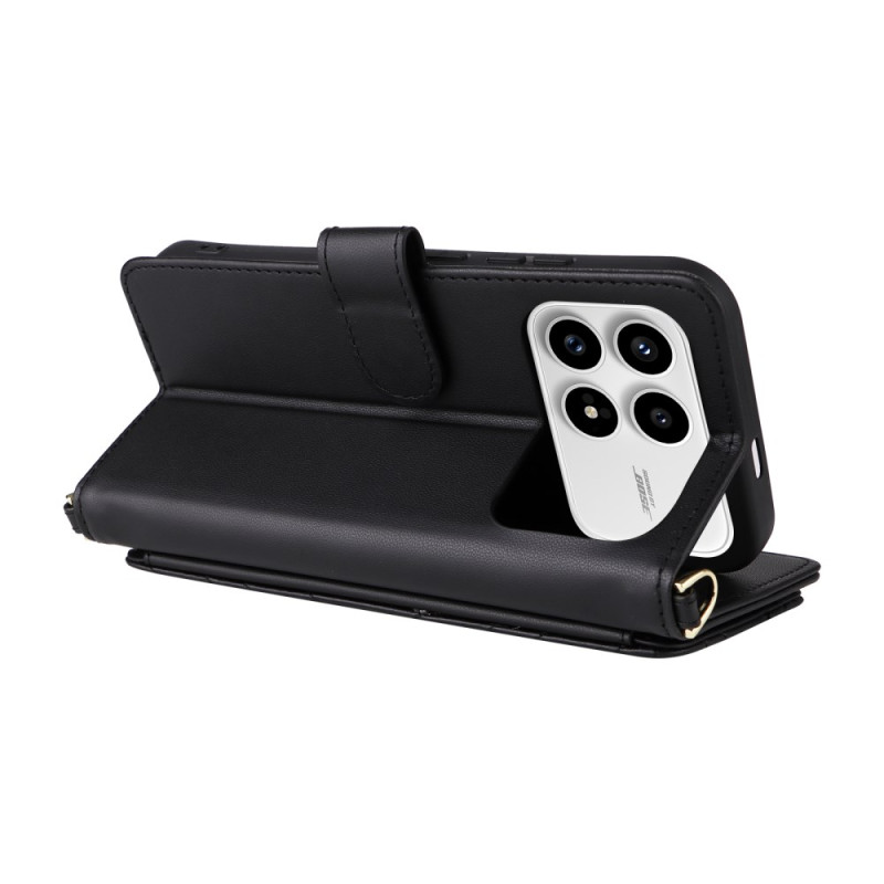 Elegant wallet case with adjustable stand and removable shoulder strap. Features 6 card slots and 1 note compartment. Made from premium PU leather and hard-wearing TPU for complete protection against knocks and scratches.