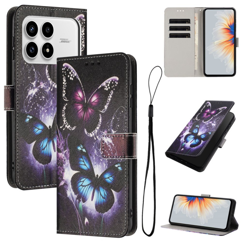 Protégez votre smartphone avec élégance grâce à cet étui portefeuille raffiné orné d'un motif deux papillons. Doté de compartiments pour cartes et espèces, d'un support pliable pour visionnage mains libres et d'une fermeture magnétique pratique avec cordon amovible.