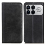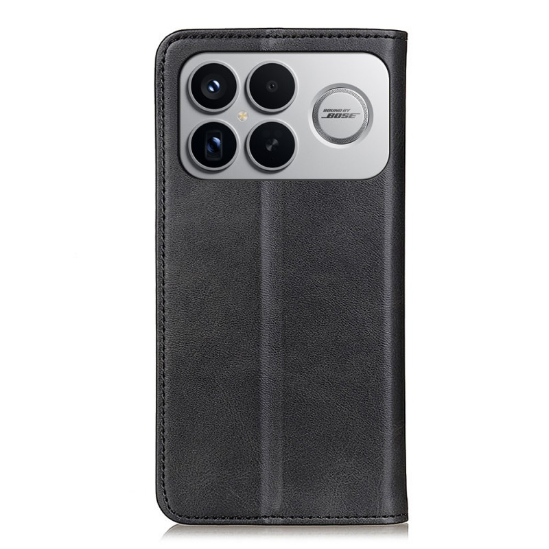 Elegant wallet case in split leather with premium leather grain texture. Features card slots, side compartment, secure magnetic closure and integrated holder function.