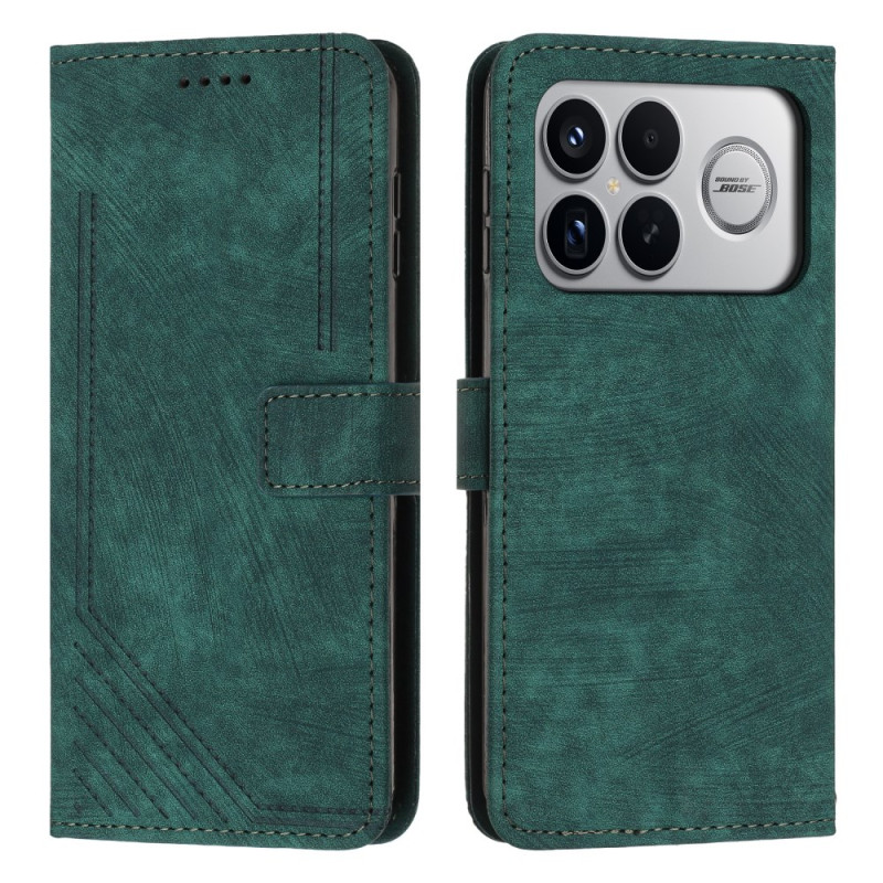 Étui portefeuille élégant en cuir PU avec lignes imprimées pour Poco F8 Ultra. Doté de 3 emplacements pour cartes, d'une fonction support, d'une fermeture magnétique sécurisée et d'une dragonne amovible pour un transport pratique.