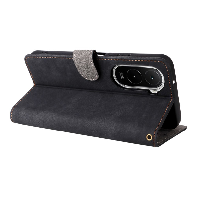 Étui portefeuille élégant en cuir PU pour Xiaomi Poco M7 4G. Protection RFID intégrée, 3 emplacements cartes et porte-monnaie. Fonction support mains libres avec fermeture magnétique sécurisée. Dragonne incluse pour un transport facile.