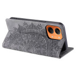 Trendy engraved motif, integrated card holder and hands-free holder for stylish everyday use.