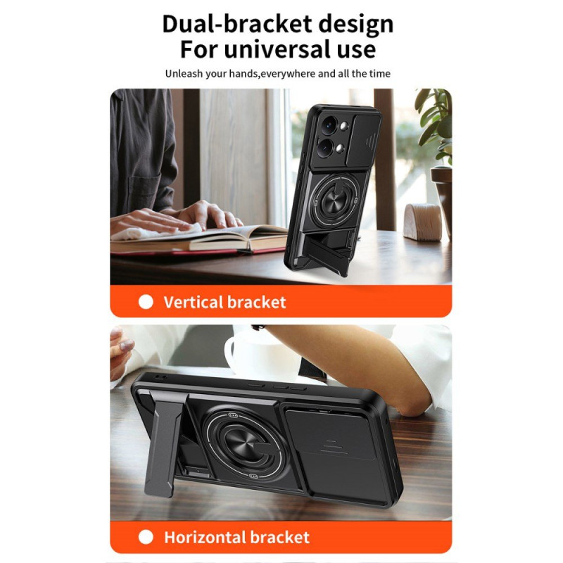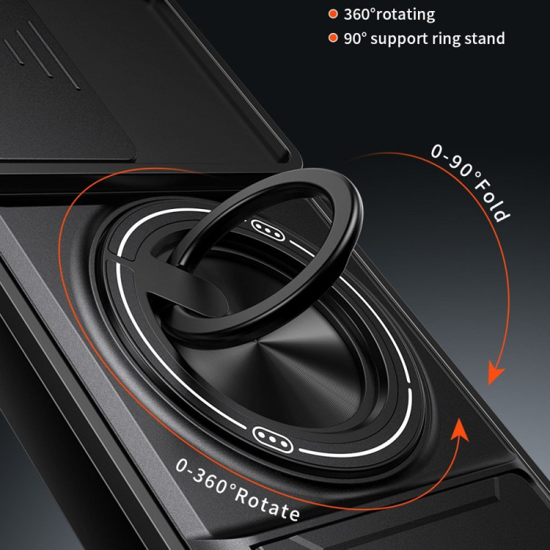 The sliding lens cover protects your camera, while the rotating magnetic ring makes it easy to hold.