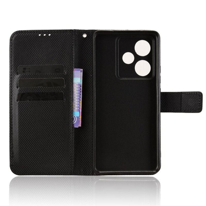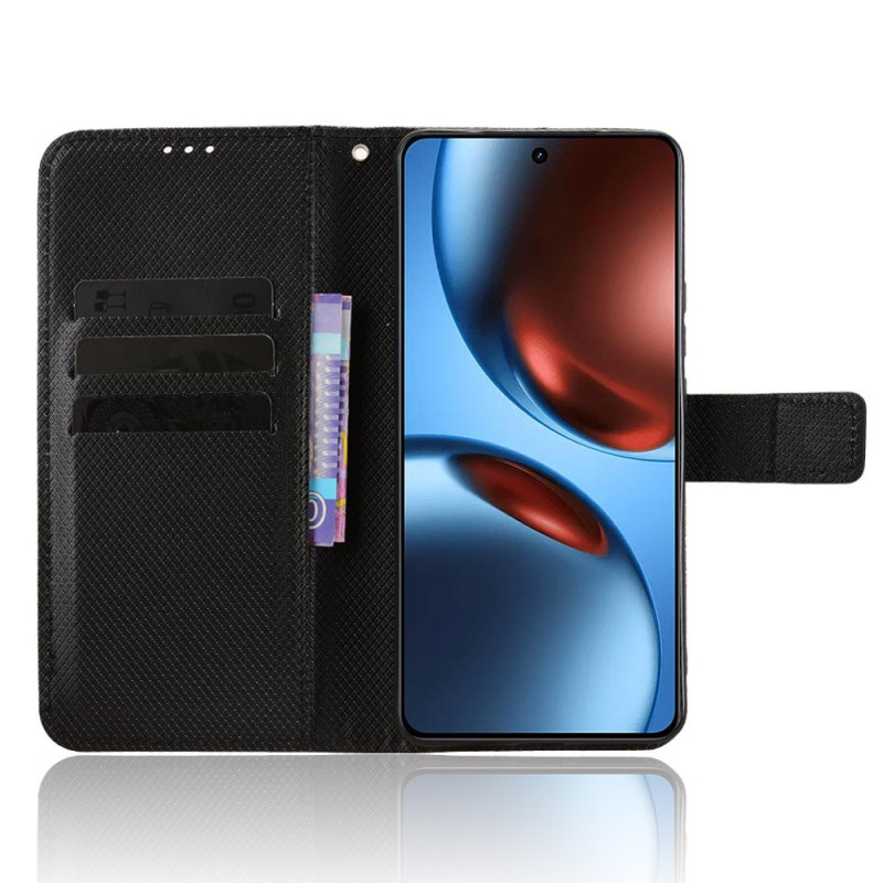 Elegant wallet case with sophisticated diamond texture for your Realme GT7 5G. Featuring multiple card slots, a note pocket and a secure magnetic closure. The practical hand strap makes it easy to carry around.