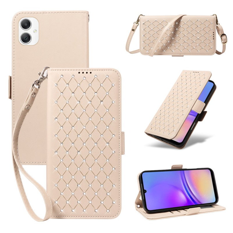 Discover this elegant wallet case with flap adorned with rhinestones and a sophisticated diamond pattern. With its 3 card slots, RFID protection and integrated holder, it combines style with everyday practicality.