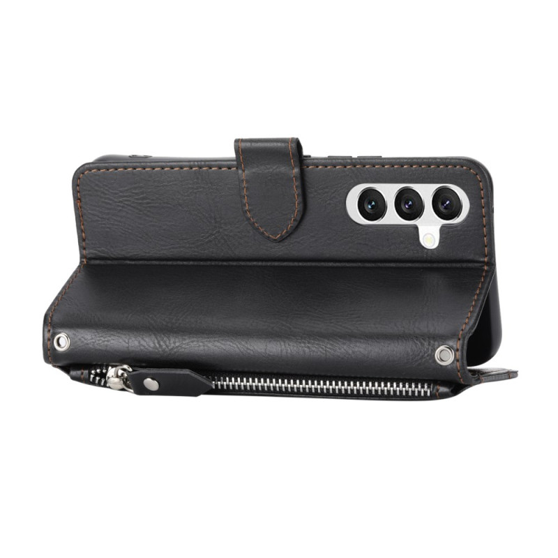 Étui multifonction en cuir PU et TPU avec poche zippée, porte-cartes intégré et bandoulière réglable. Design portefeuille complet pour ranger cartes, espèces et pièces. Fonction support pliable pour visionnage mains libres et fermeture magnétique sécurisée.