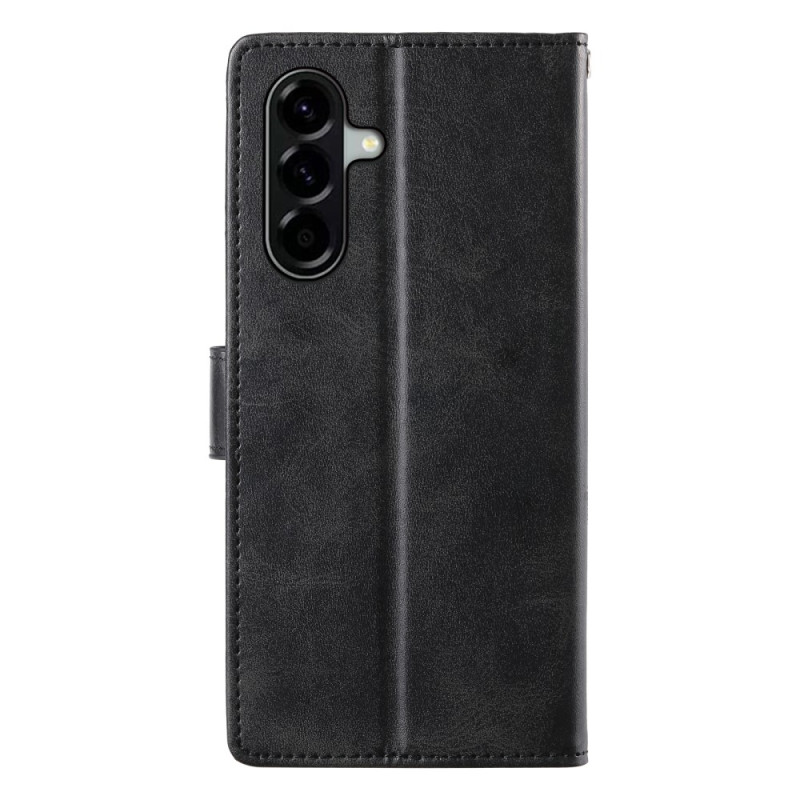 Étui portefeuille élégant en cuir PU texture veau pour Samsung Galaxy A37 5G. Design sophistiqué avec support ajustable, fermeture magnétique et dragonne pratique. Protégez votre téléphone avec style tout en gardant vos cartes à portée de main.