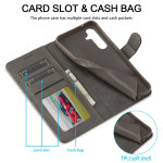 Stylish wallet case for Samsung Galaxy A57 5G with calf leather texture. Features 2 card slots, 1 photo compartment and 1 cash pocket. Foldable viewing stand and secure magnetic closure for complete protection.