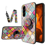 Protect your Samsung Galaxy A57 5G in style with this sturdy case combining tempered glass, an elegant ethnic motif and an integrated kickstand. Features a practical hand strap and a metal plate for magnetic support.
