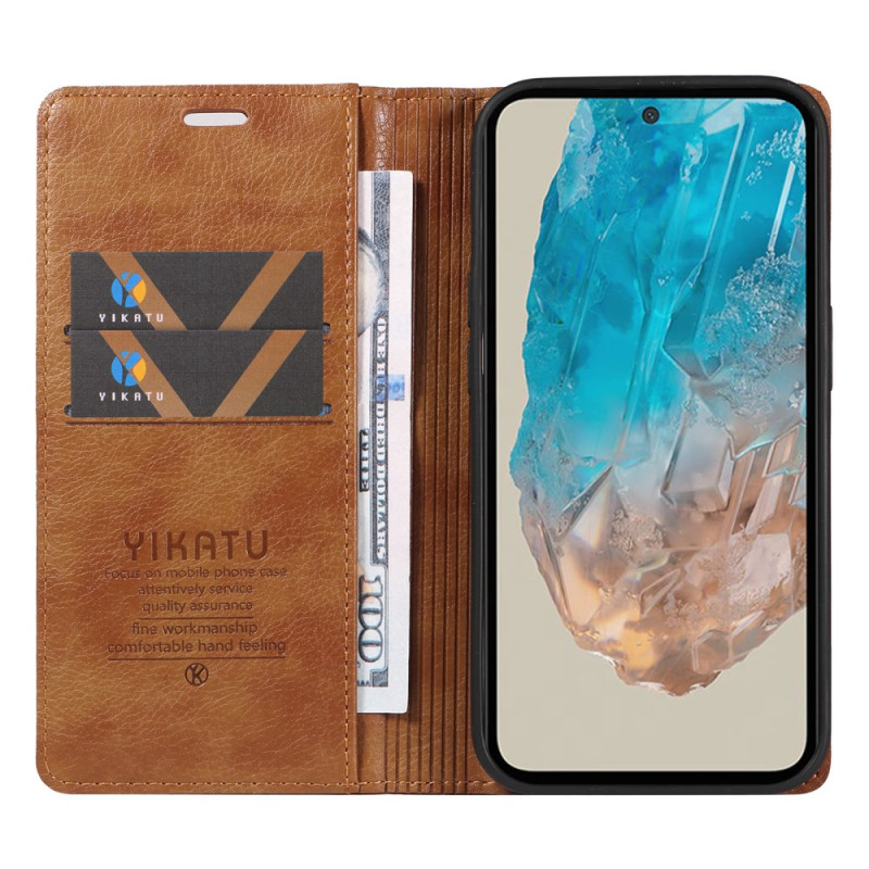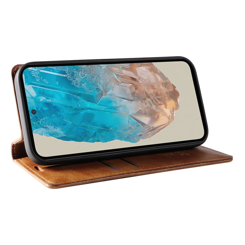 Discover our stylish and practical wallet cover for the Samsung Galaxy M35 5G. Made from high-quality PU leather with a lychee grain finish, it offers practical storage for your cards and money.
